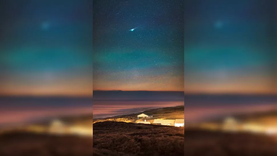 A photo of the green comet and its anti-tail above the Thy National Park in Denmark on Jan. 21. (Image credit: Ruslan Merzlyakov)