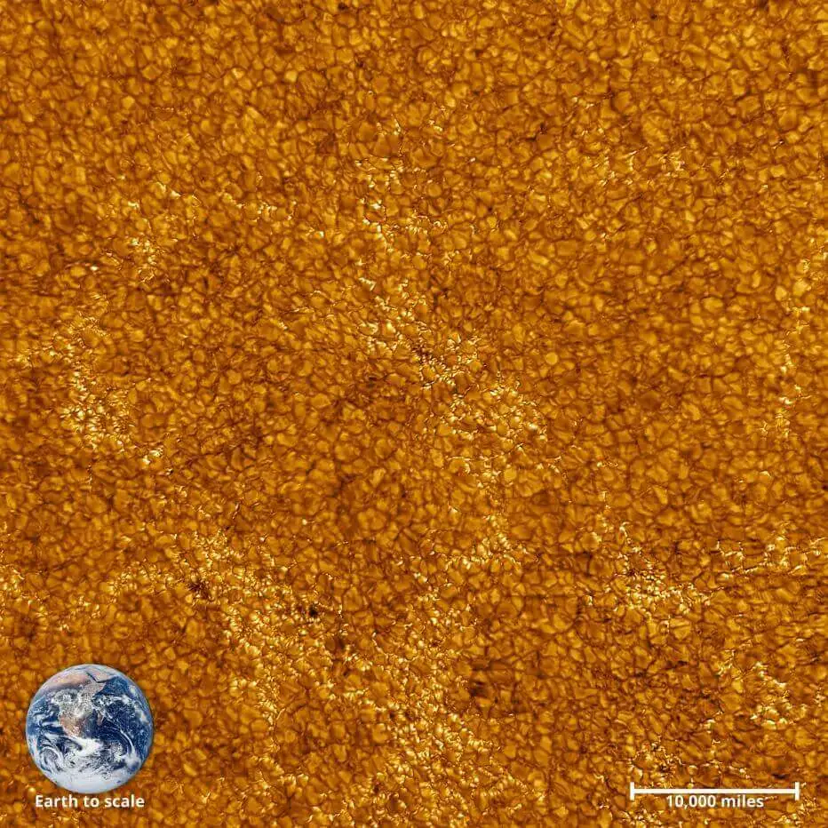 The world’s most powerful solar telescope has captured the face of our star in stunning detail. The resolution of the image is only 18 km and it shows the middle layer of the solar atmosphere.