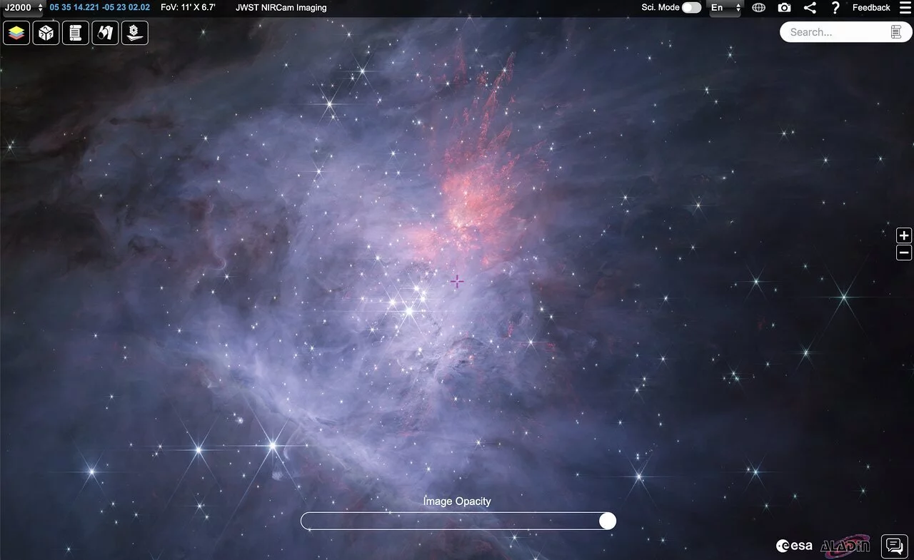 New images of the Orion Nebula from the NASA/ESA/CSA James Webb Space Telescope have been included in ESA’s ESASky application, which has a user-friendly interface to visualize and download astronomical data.